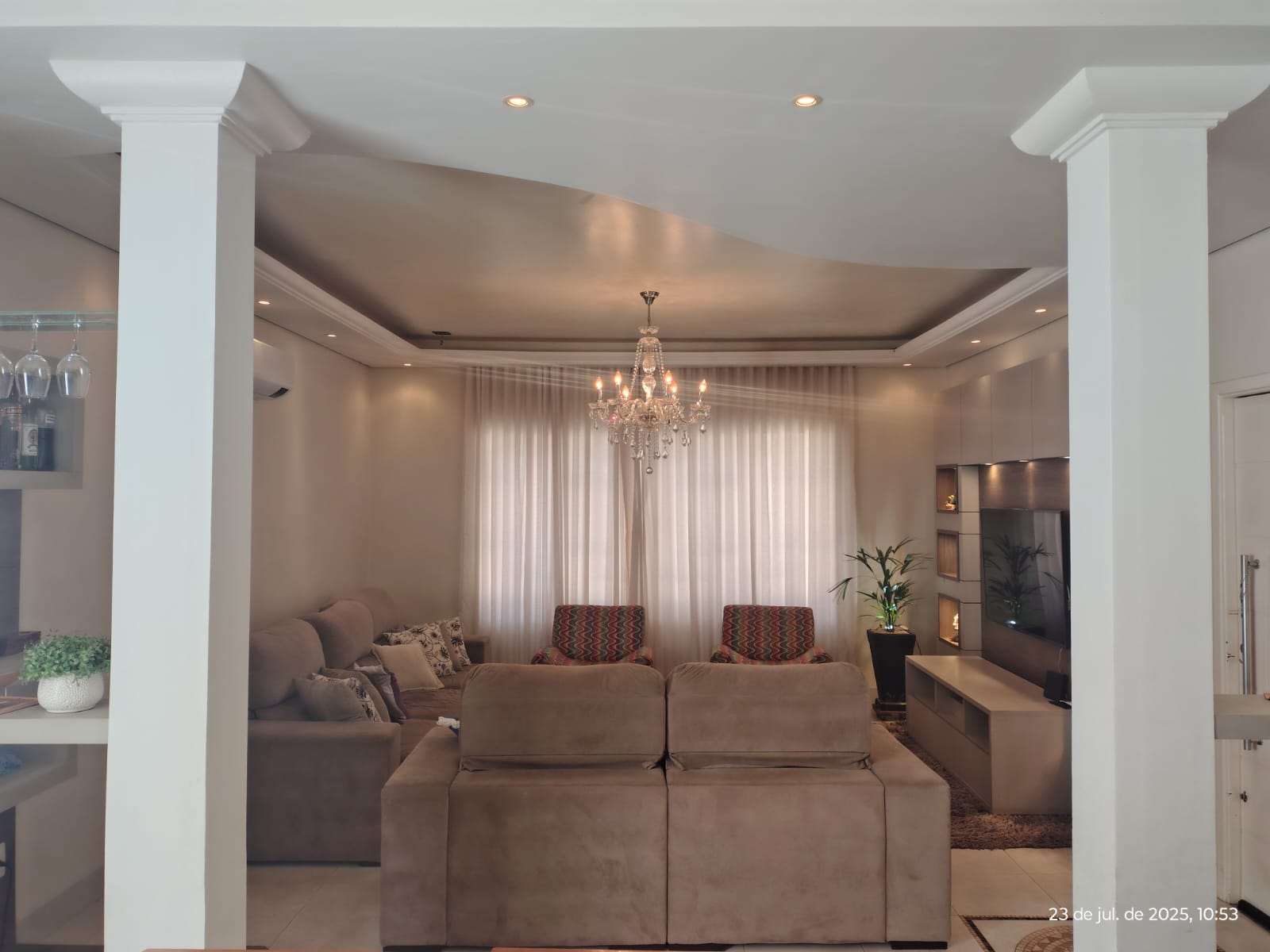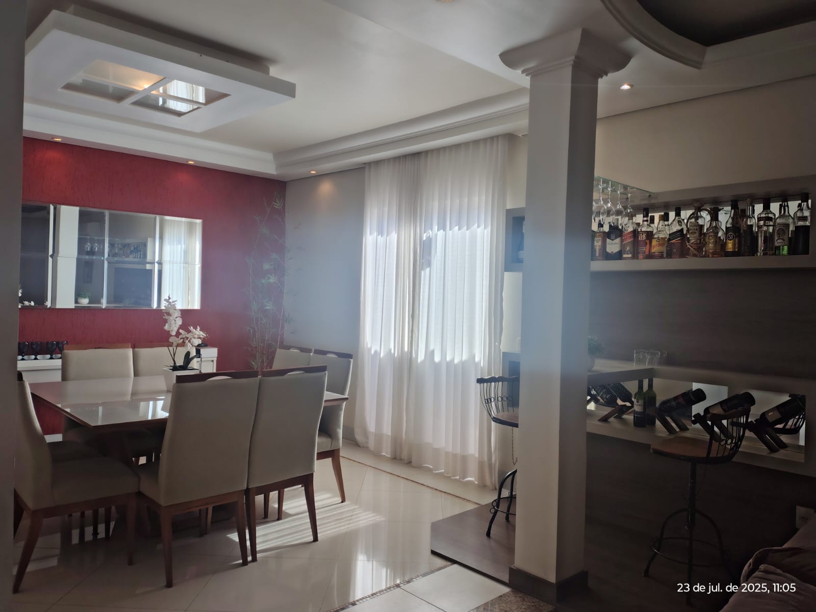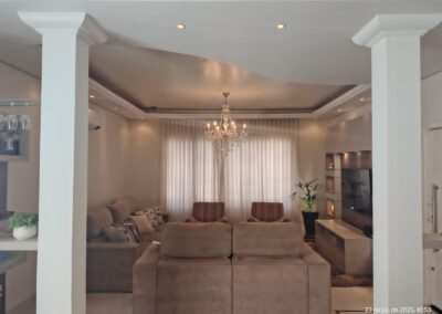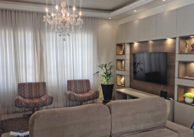 * Sala de jantar e sala de estar juntas (ambiente amplo – 50 mts2), com painel e barzinho planejados e iluminados.
