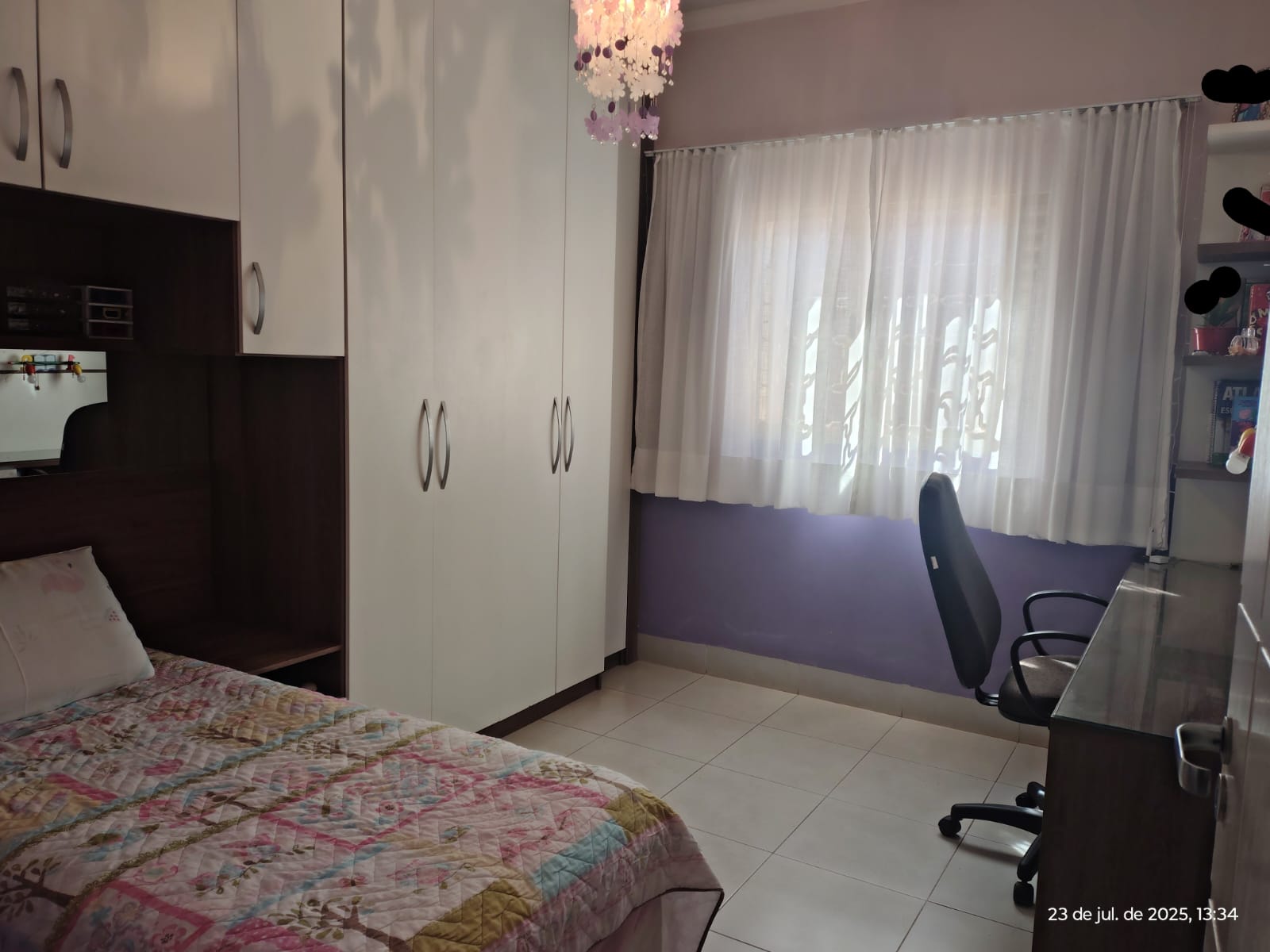 * 3 quartos sendo 1 suíte com banheira de hidromassagem, 2 chuveiros e closet planejado; 1 quarto de solteiro todo planejado e um quarto de solteiro vazio.
