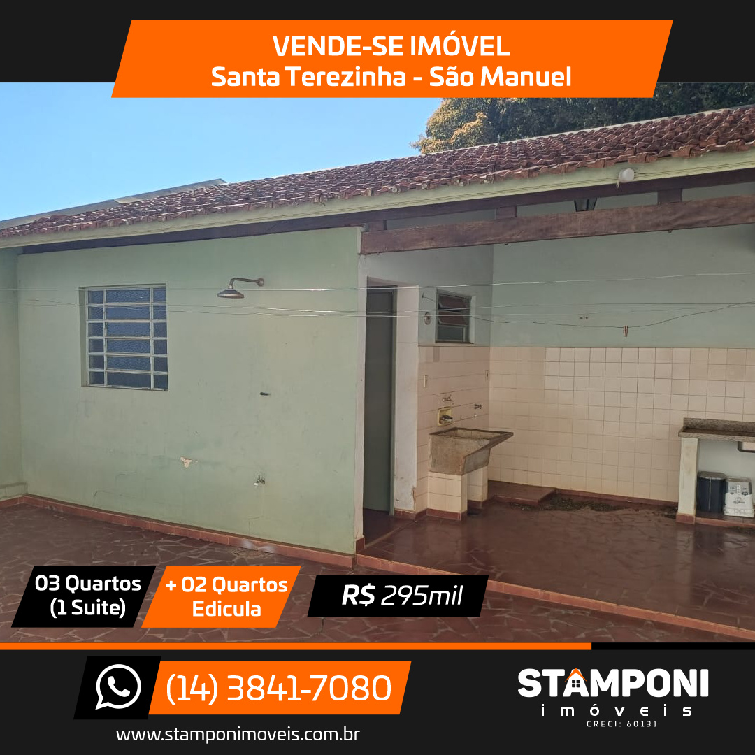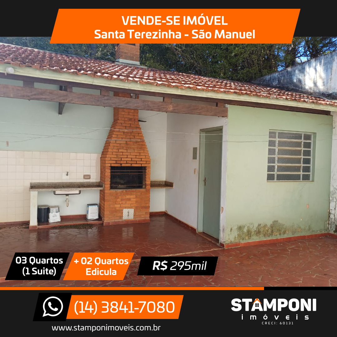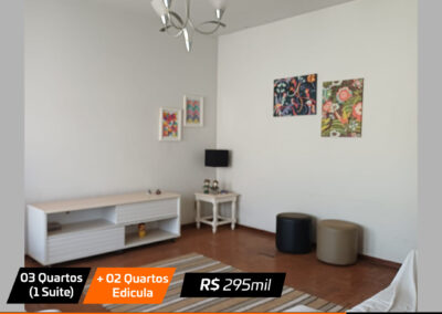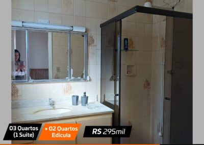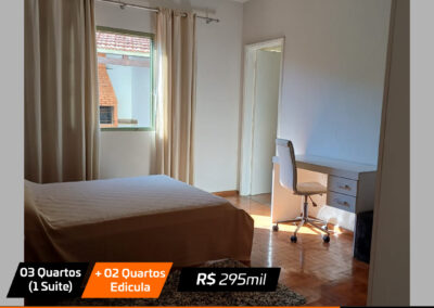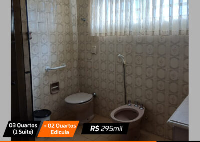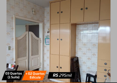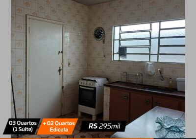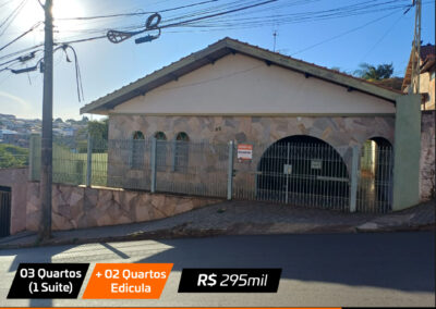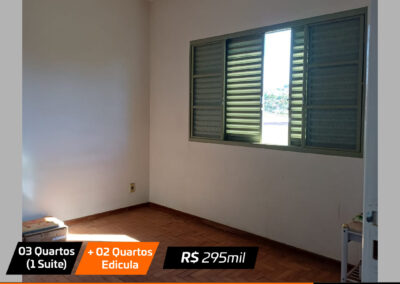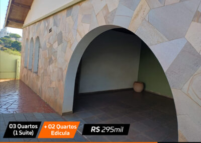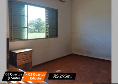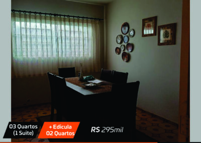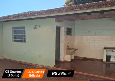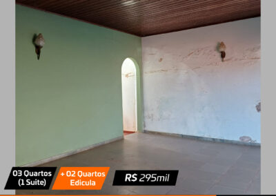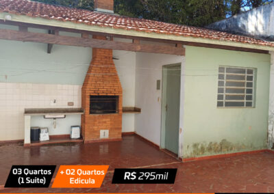 Sala, sala jantar, cozinha , 3 quartos(1 suite), banheiro social, edicula com churrasqueira + 2 quartos pequenos e banheiro e garagem Valor: R$ 295 mil