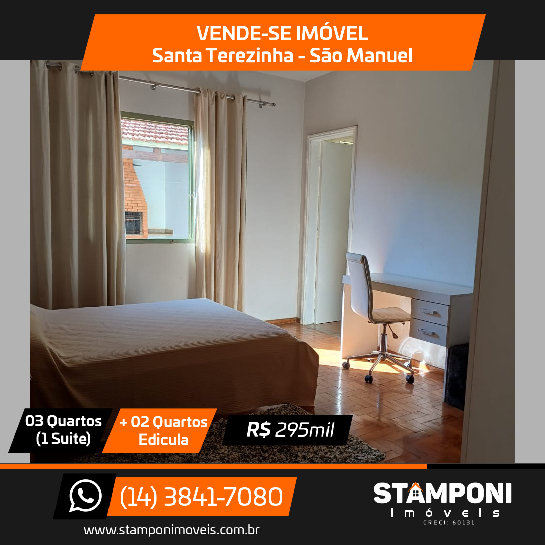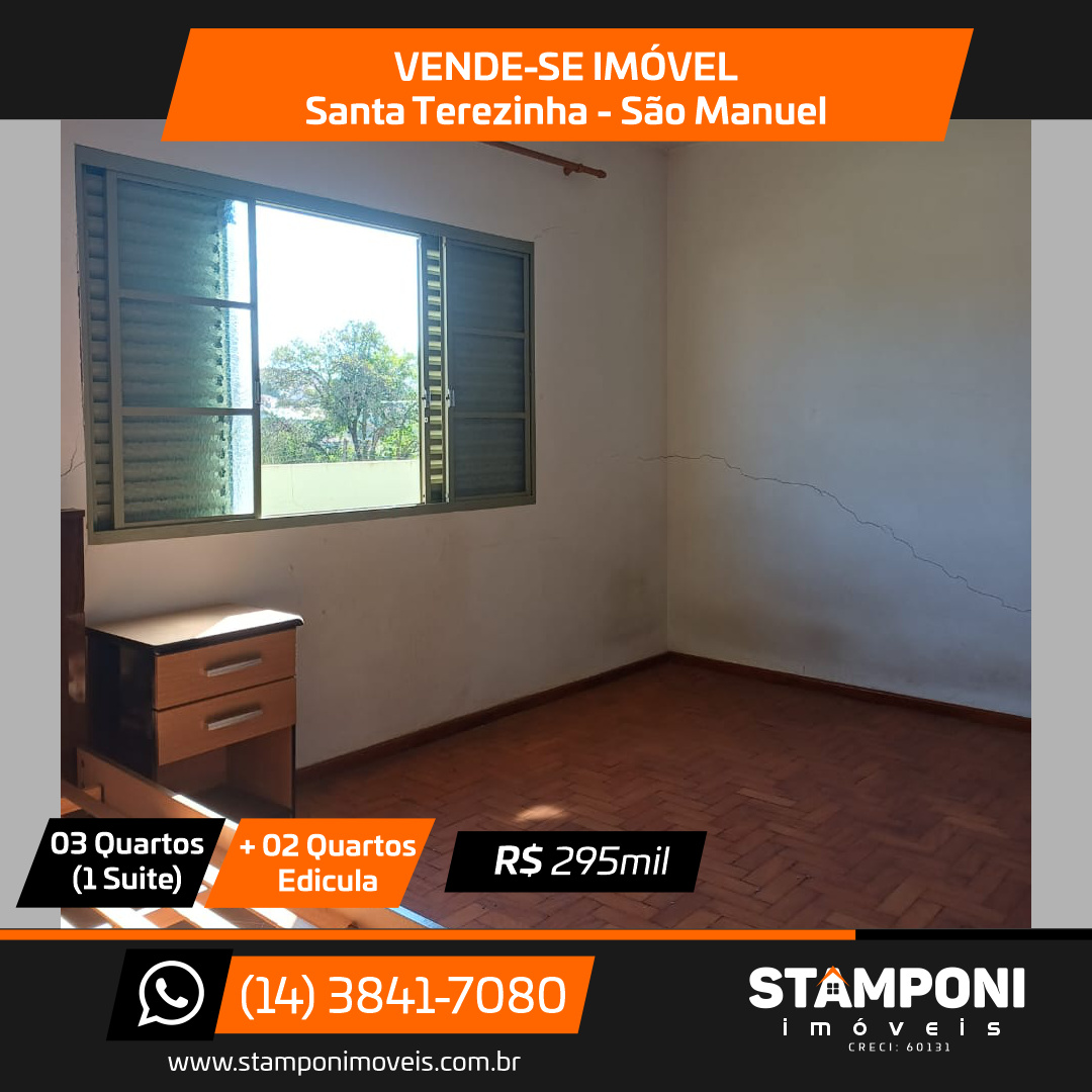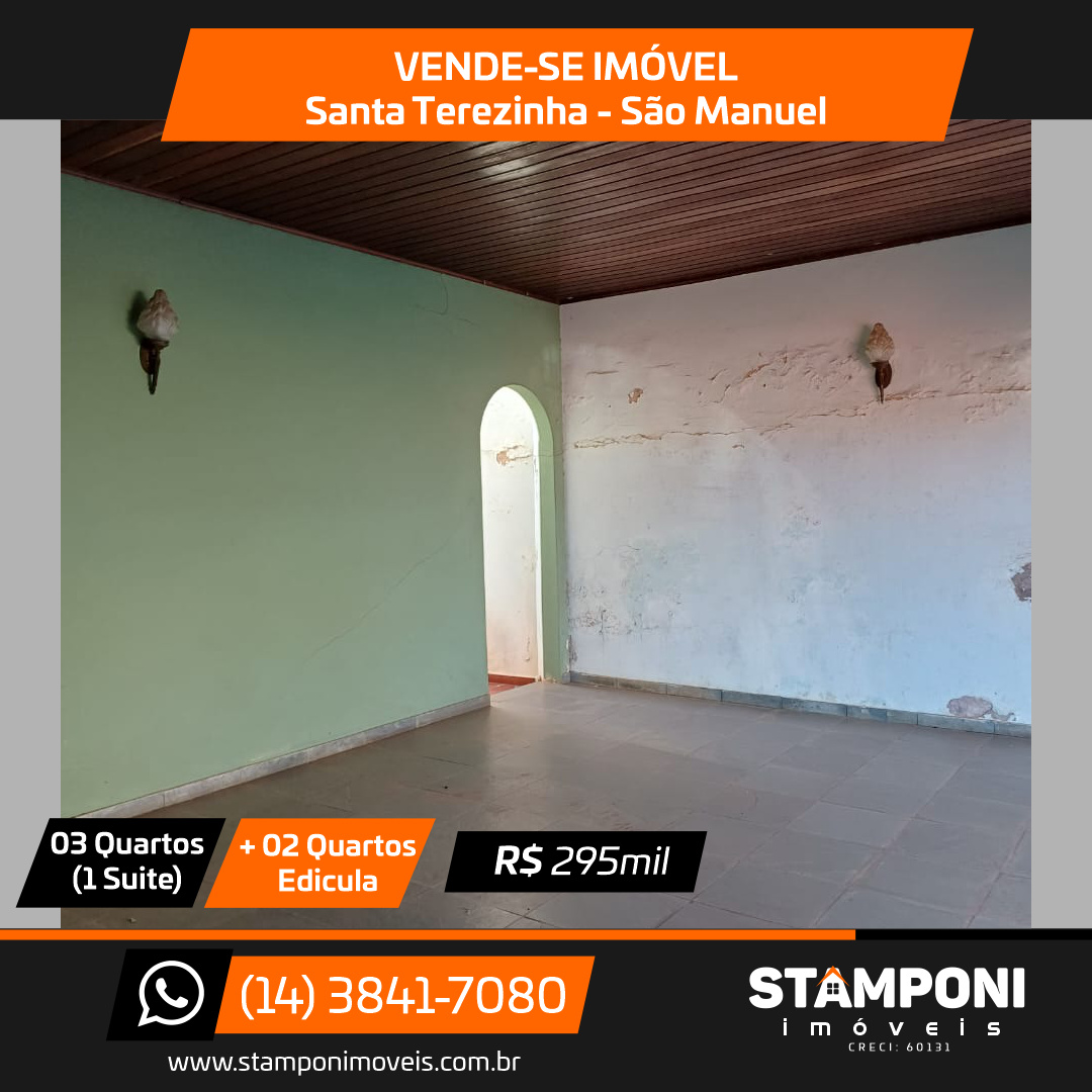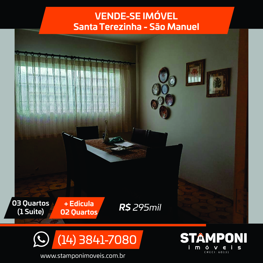 Sala, sala jantar, cozinha , 3 quartos(1 suite), banheiro social, edicula com churrasqueira + 2 quartos pequenos e banheiro e garagem Valor: R$ 295 mil