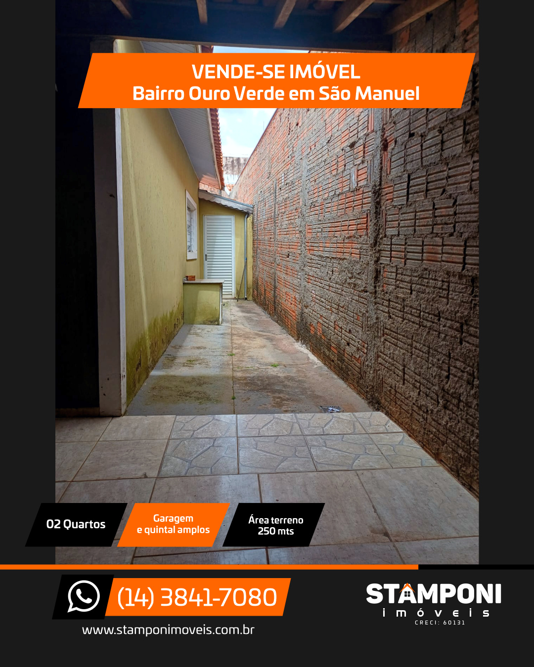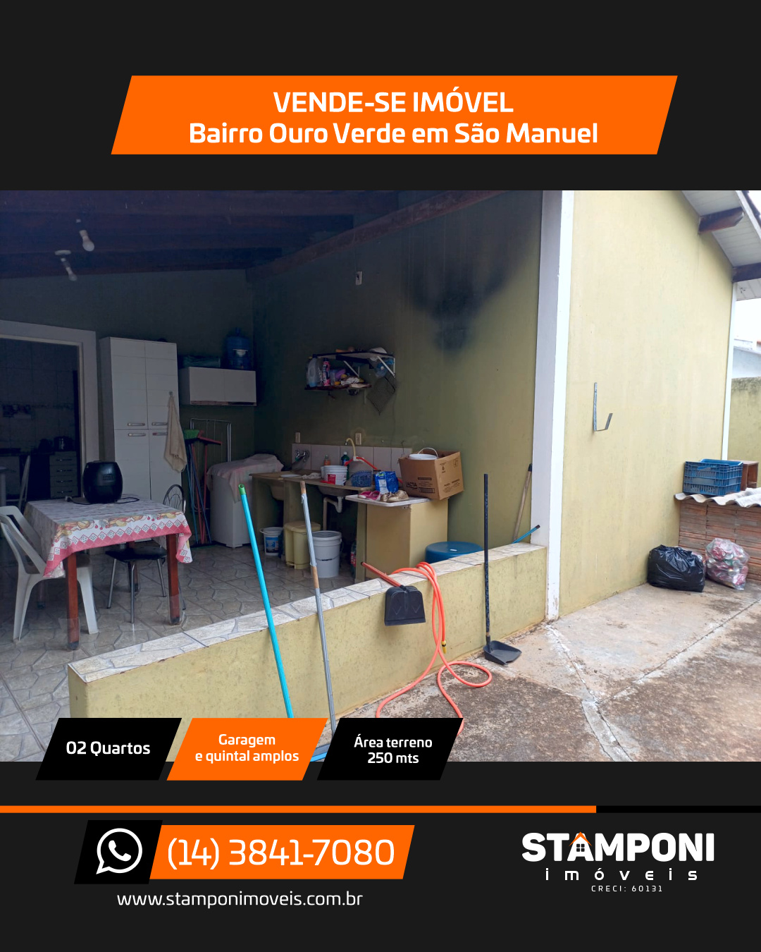 2 quartos, sala, cozinha, banheiro, garagem e quintal amplos.